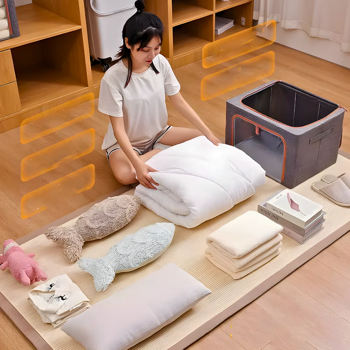 – Alta Capacidade de Armazenamento: O organizador é projetado para comportar grandes volumes de roupas, edredons, cobertores e outros itens pesados, mantendo tudo organizado e protegido.
