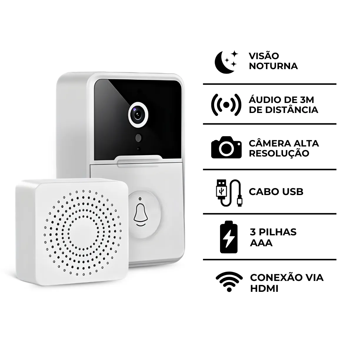 Explore a conveniência e segurança avançada com nossa Campainha de Vídeo Sem Fio. Equipada com tecnologia de ponta, esta campainha oferece uma solução completa para monitoramento e interação com visitantes, tornando-a ideal para residências e escritórios.