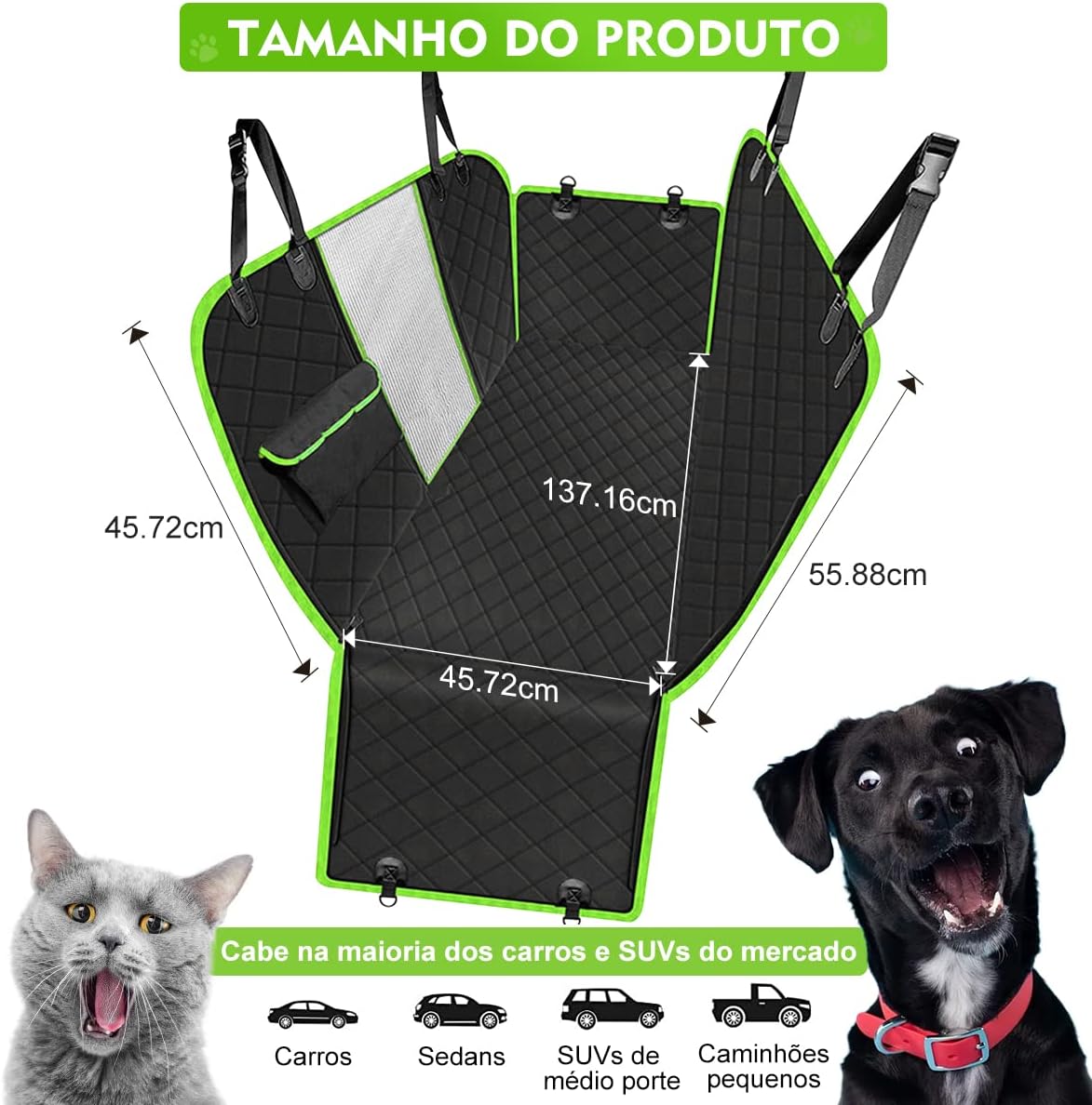 Feito com panos de 4 camadas, capa de carro para animais de estimação é 100% à prova de arranhões, resistente à água e protege seu carro de baba do, patas lamacentas, grama e pelos. A rede de carro para cães é forte o suficiente para segurar seus amigos de estimação de até 45 kg! Você pode facilmente usar um pano úmido ou aspirador de pó para limpar a capa e também é possível lavá-la.