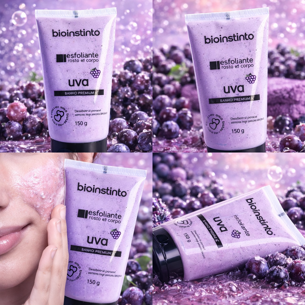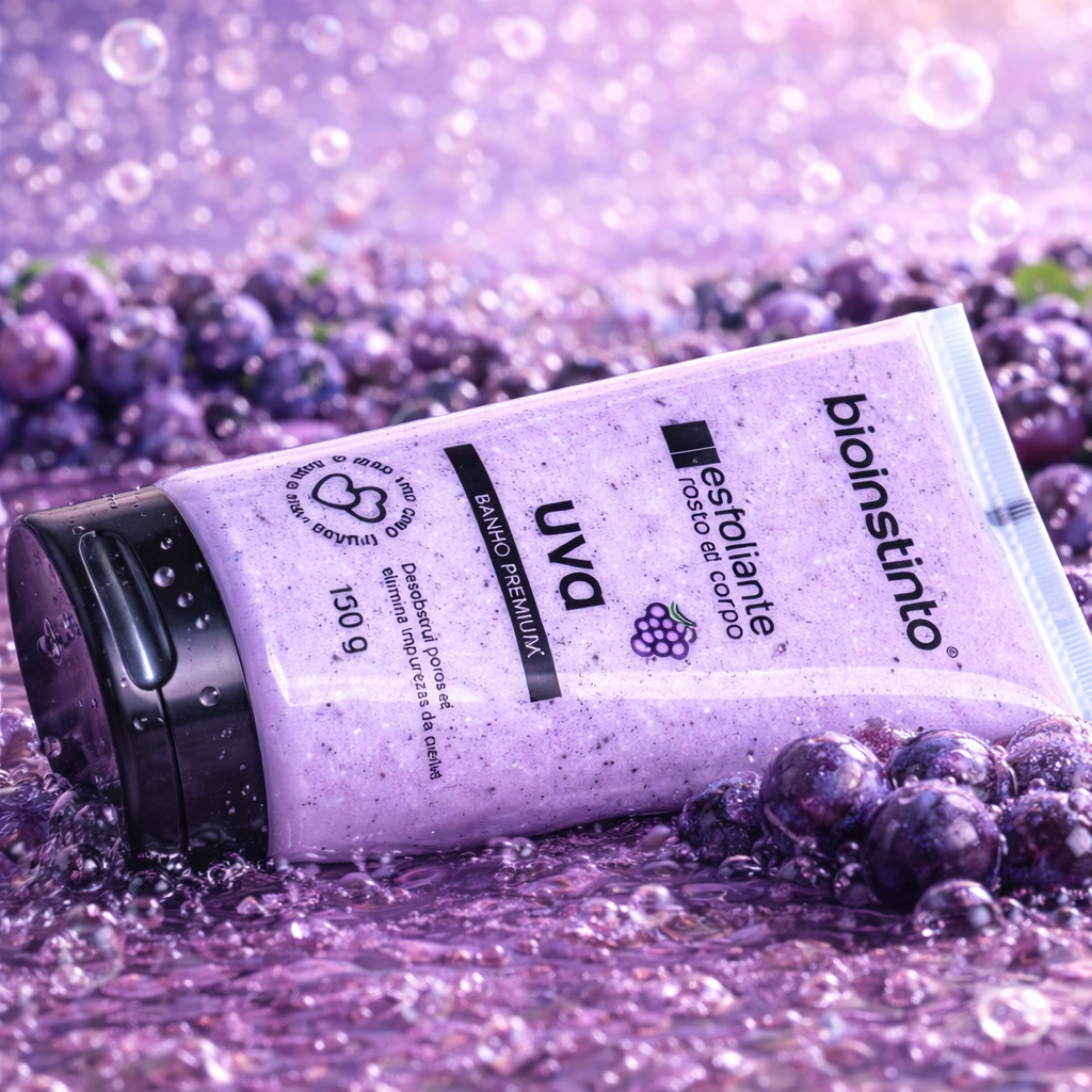 O Esfoliante Bio Instinto Uva é o aliado perfeito para deixar sua pele limpa, hidratada e com toque de seda. Um cuidado completo que transforma o seu momento de banho em uma experiência de beleza e bem-estar.