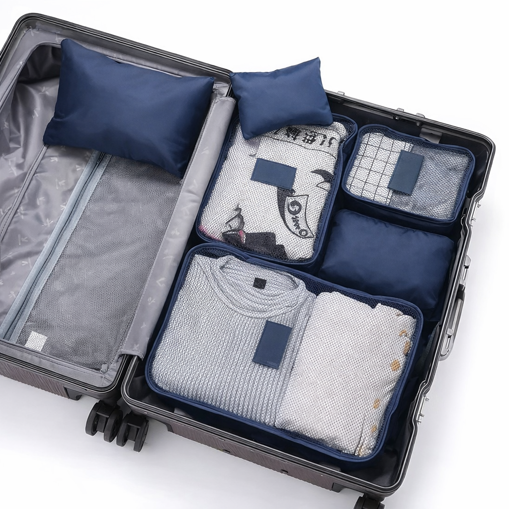 O Kit Organizador de Viagem é a solução ideal para manter sua mala sempre organizada, otimizar espaço e facilitar o acesso aos seus itens durante viagens, passeios ou até no dia a dia. Com diferentes tamanhos, ele permite separar roupas, calçados, cosméticos, acessórios e eletrônicos de forma prática e eficiente.