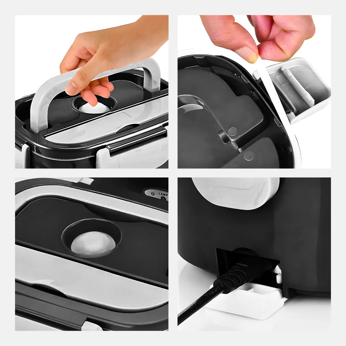 – Facilidade de Uso e Limpeza: A marmita elétrica é fácil de operar e limpar. O compartimento externo de plástico transparente é removível, tornando a limpeza simples, enquanto a parte interna de alumínio deve ser mantida seca e livre de contato com água para garantir a durabilidade do produto.