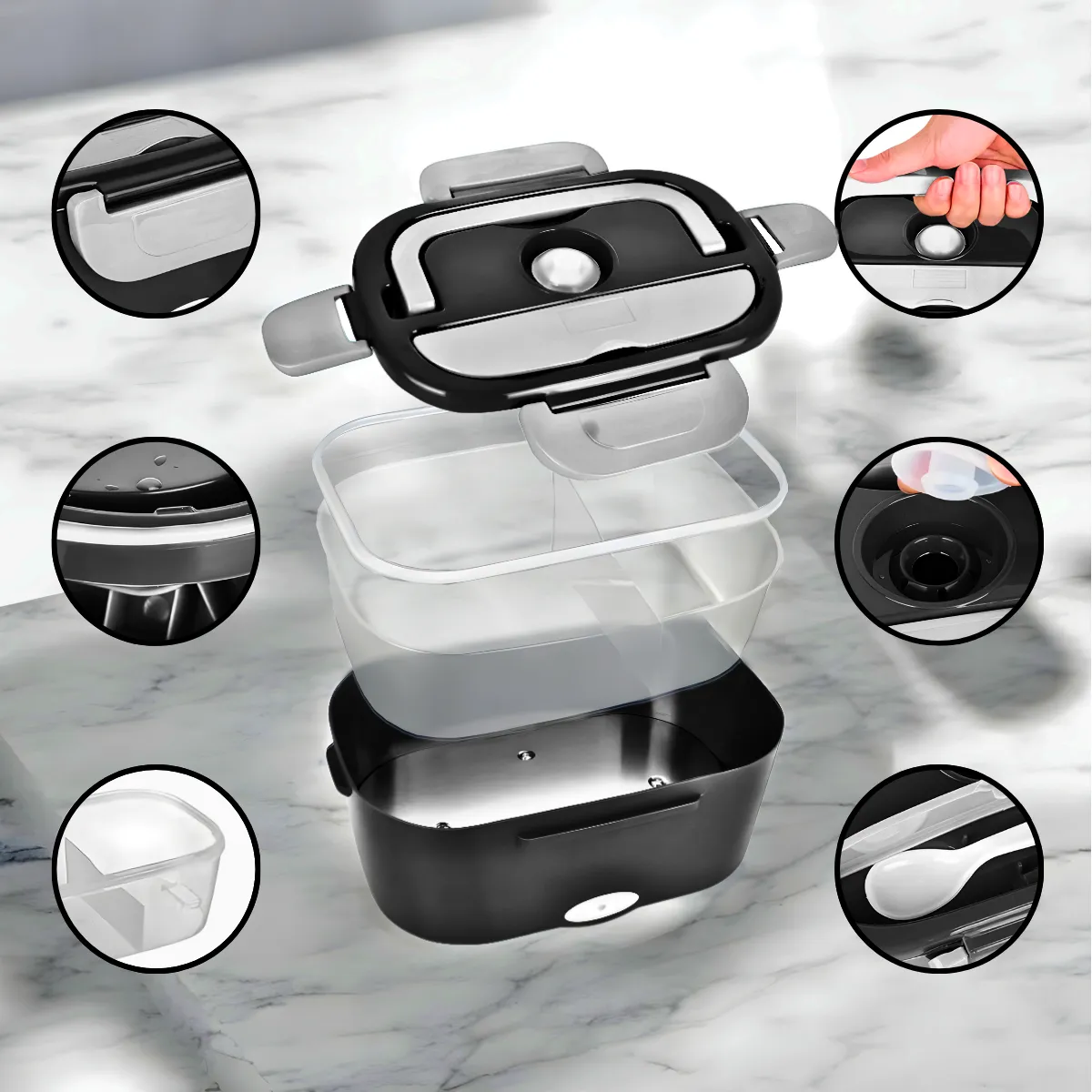 – Aquecimento Rápido: A marmita elétrica aquece os alimentos em poucos minutos, proporcionando uma refeição quente e pronta de maneira rápida e conveniente.
