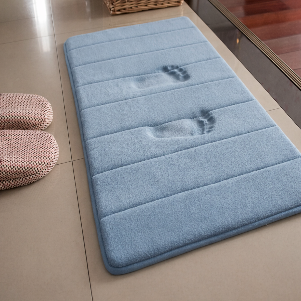 Tapete de banheiro em espuma de memória espessa e altamente resistente. Extremamente macio e confortável, proporciona uma sensação agradável e relaxante para os seus pés.